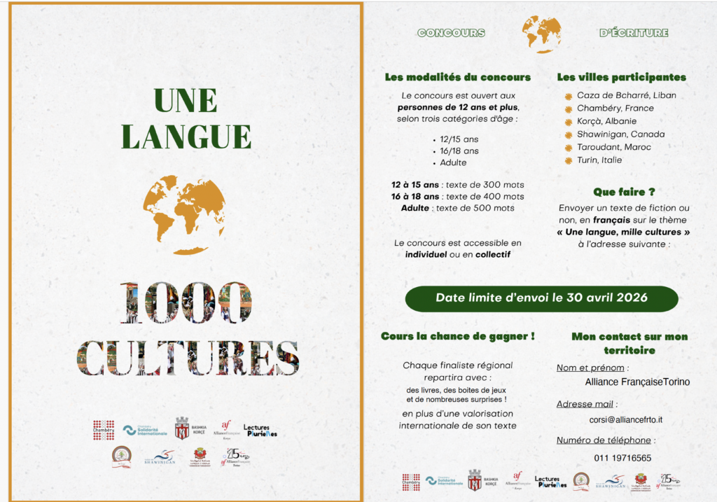 📧 Per partecipare: invia il tuo testo in francese sul tema “Une langue, mille cultures” a